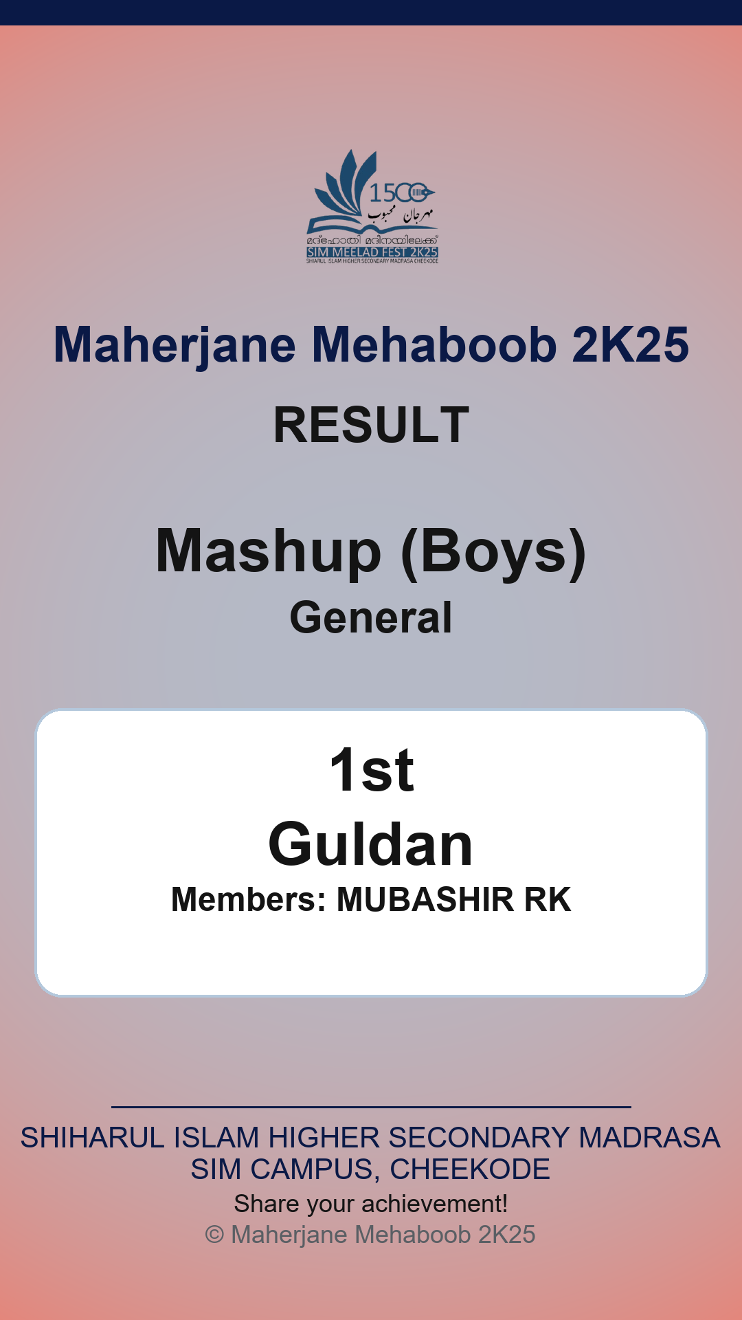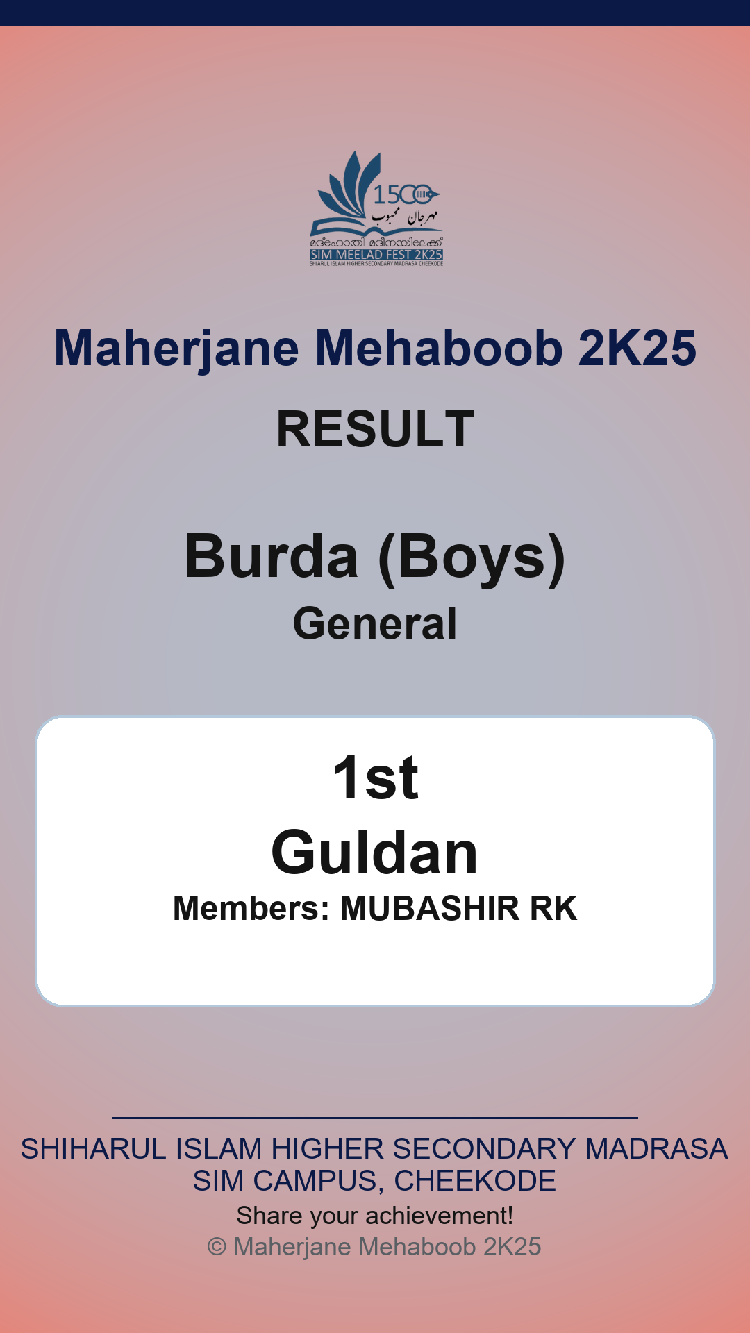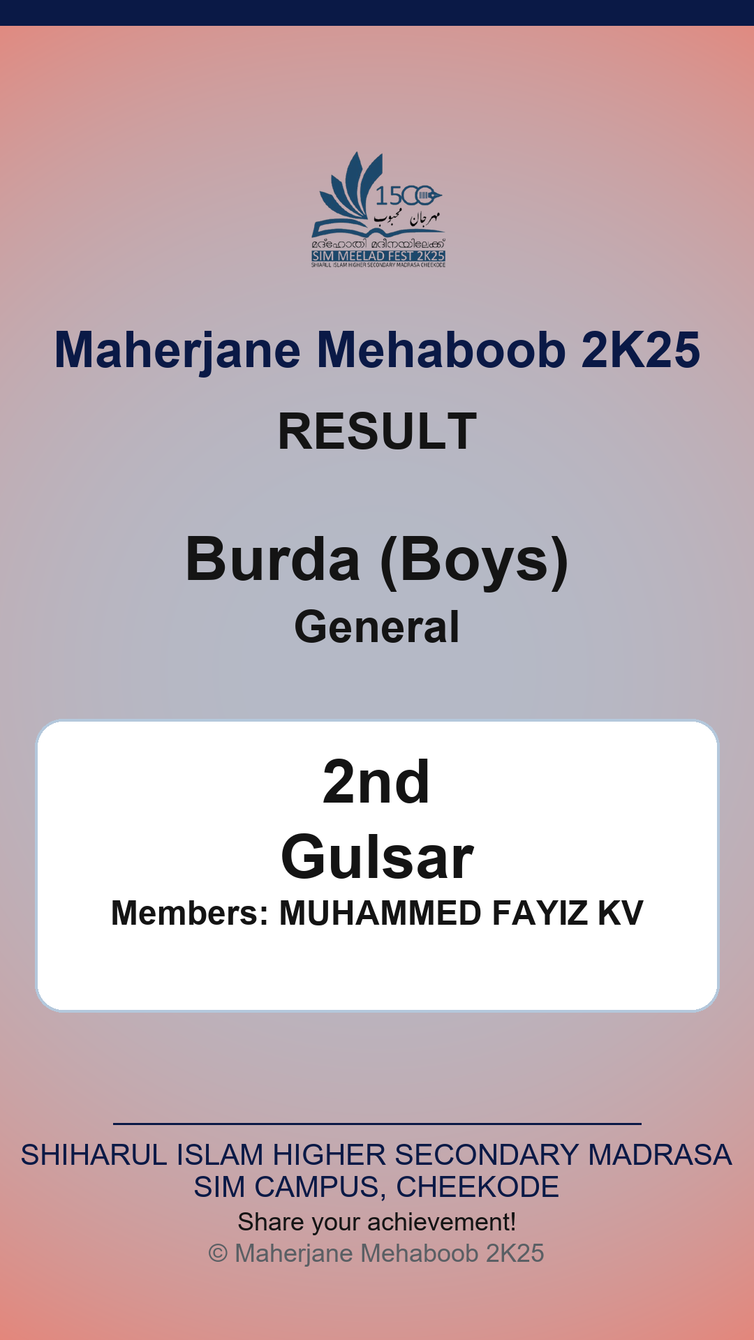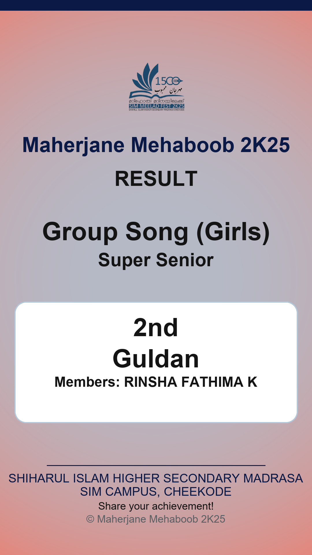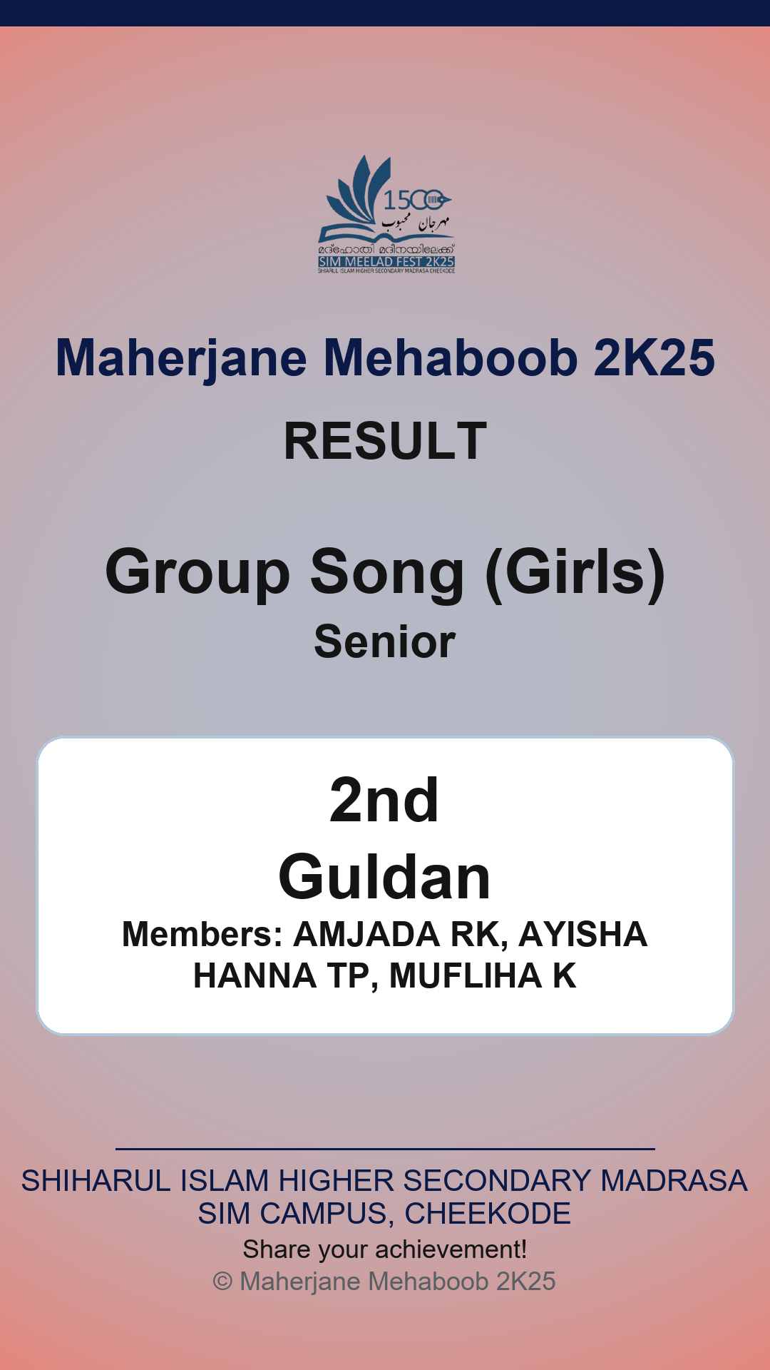 🥈 2nd Muhiyudheen Mala (Girls) (General) Guldan