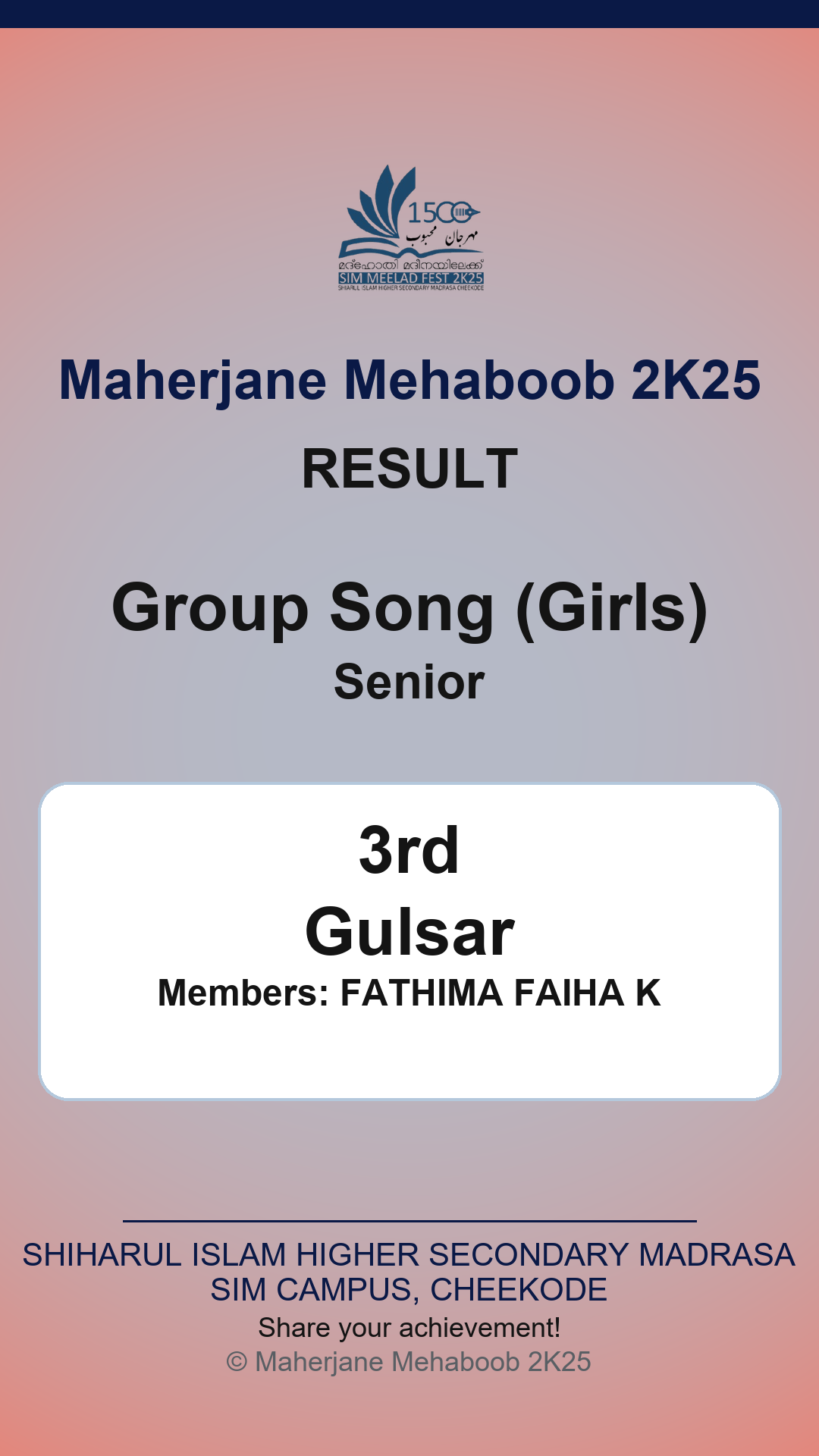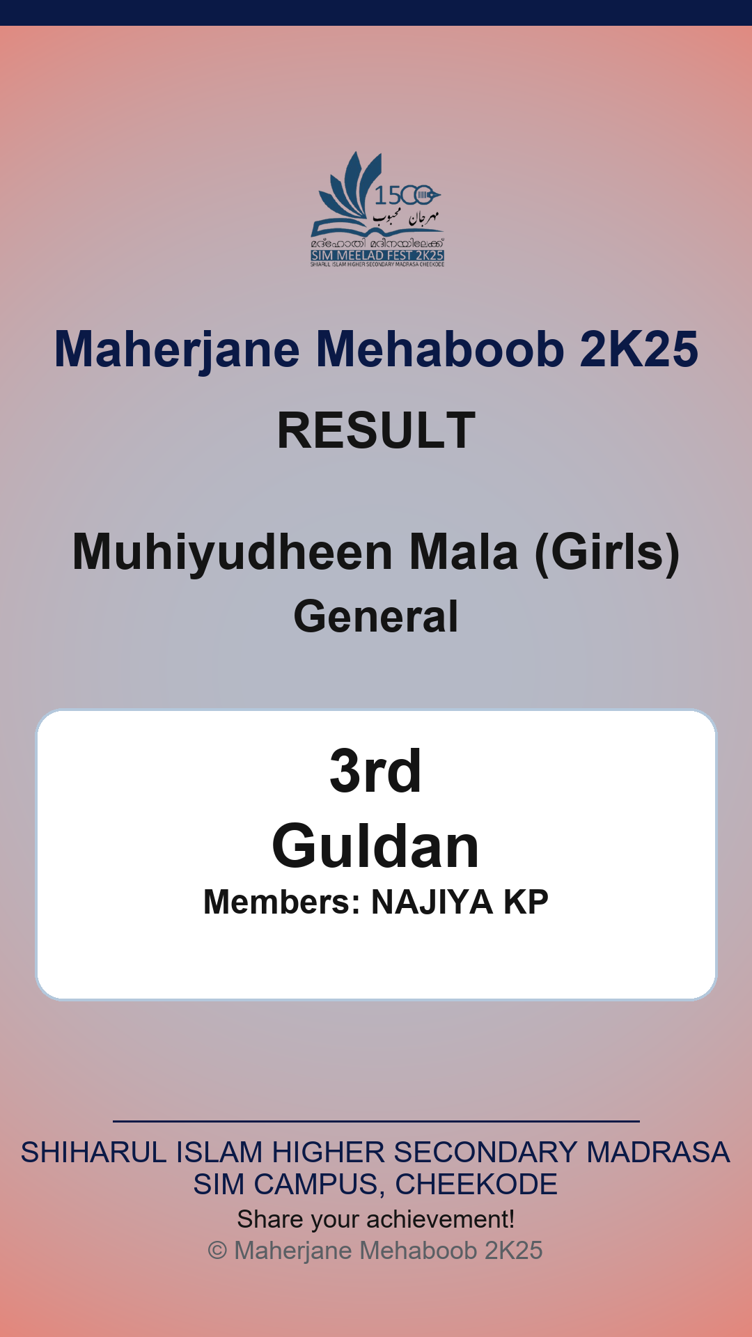 🥉 3rd Muhiyudheen Mala (Girls) (General) Guldan