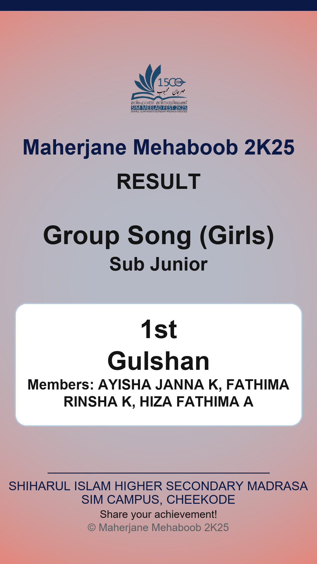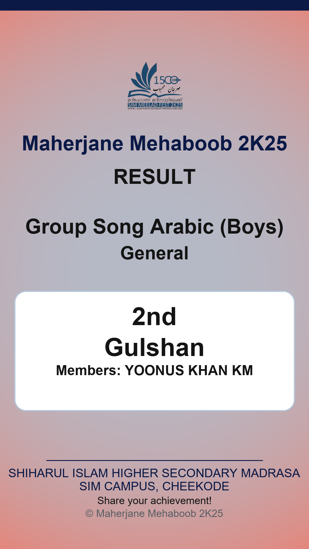 🥈 2nd Group Song Arabic (Boys) (General) Gulshan