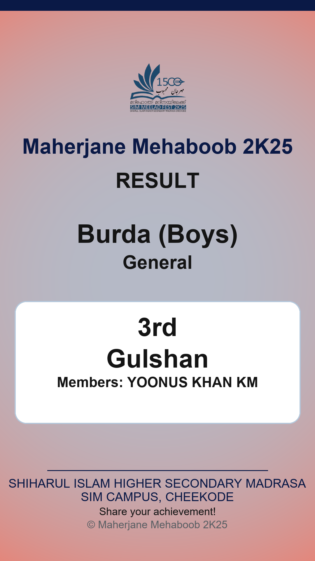 🥉 3rd Muhiyudheen Mala (Girls) (General) Gulshan